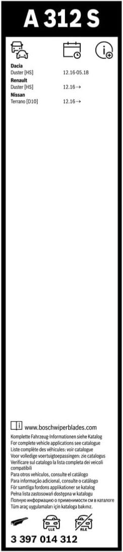 AERO Twin A312S Bosch Kit 2 balais Essuie Glace Avant 600/450