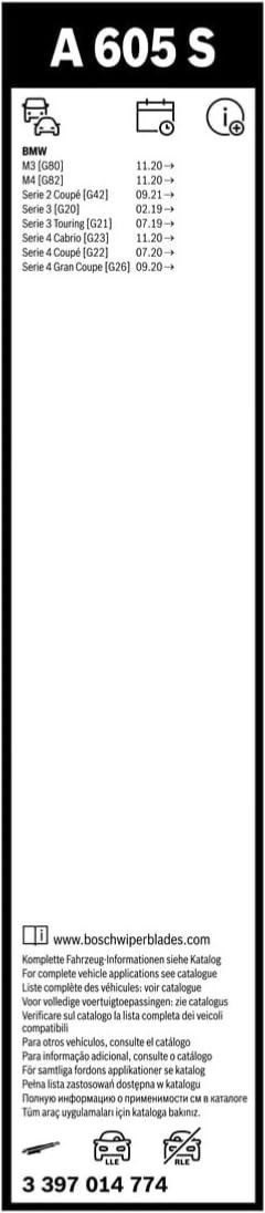 AERO Twin A605S Bosch Kit 2 balais Essuie Glace Avant 600/475