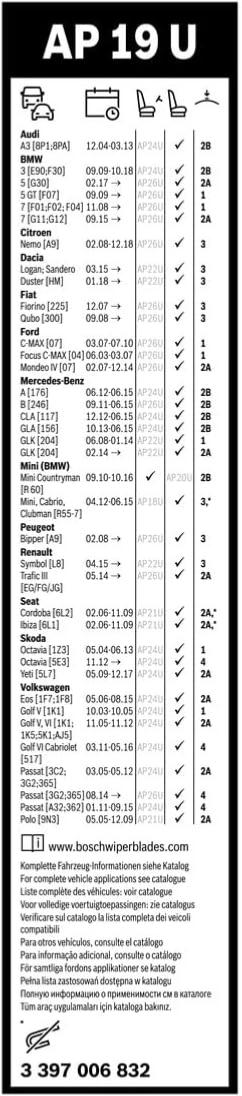 AERO Twin Plus AP19U Bosch balais Essuie Glace Multi adaptateurs 475mm