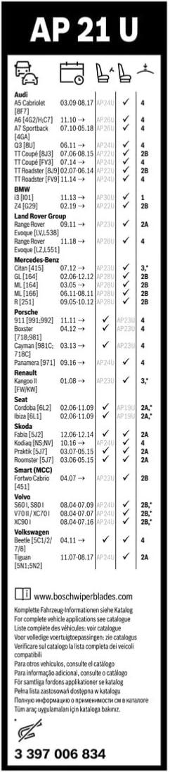 AERO Twin Plus AP21U Bosch balais Essuie Glace Multi adaptateurs 530mm