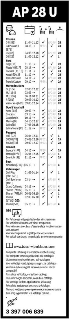 AERO Twin Plus AP28U Bosch balais Essuie Glace Multi adaptateurs 700mm