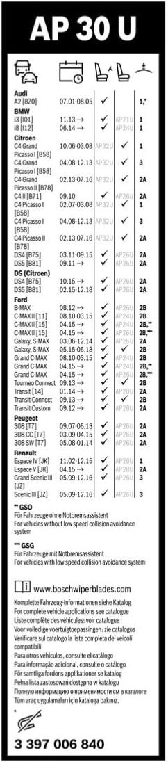 AERO Twin Plus AP30U Bosch balais Essuie Glace Multi adaptateurs 750mm