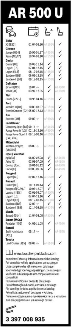 AERO Twin Retrofit AR500U Bosch balais Essuie Glace Multi adaptateurs 500mm
