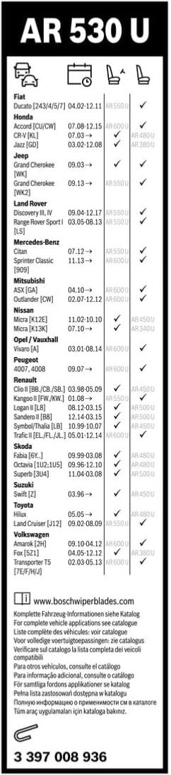 AERO Twin Retrofit AR530U Bosch balais Essuie Glace Multi adaptateurs 530mm