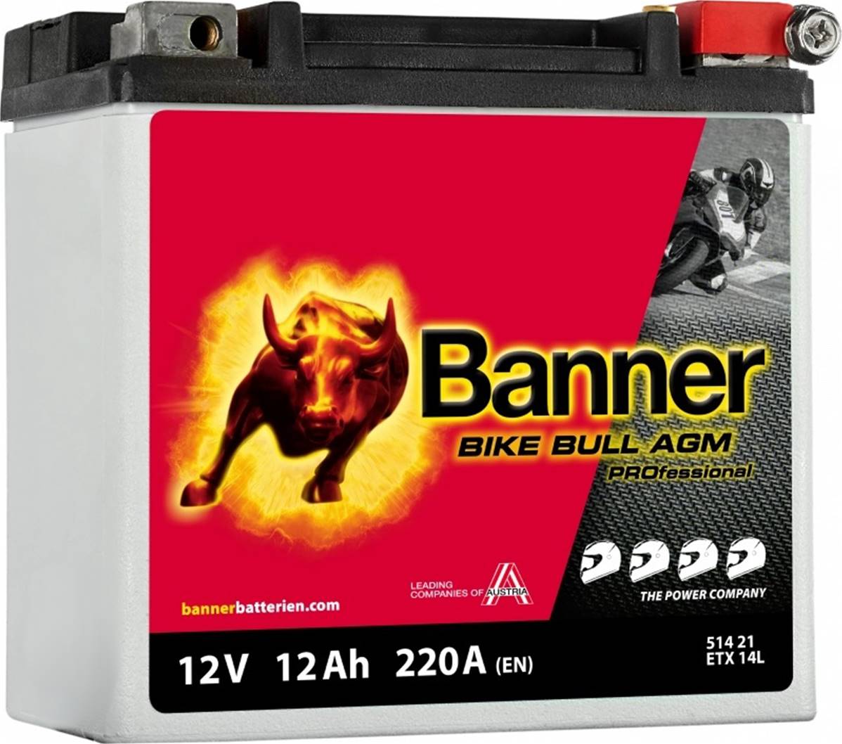 Batterie Moto BANNER ETX14L AGM 12V 12Ah 220A Pro Bike Bull 51421
