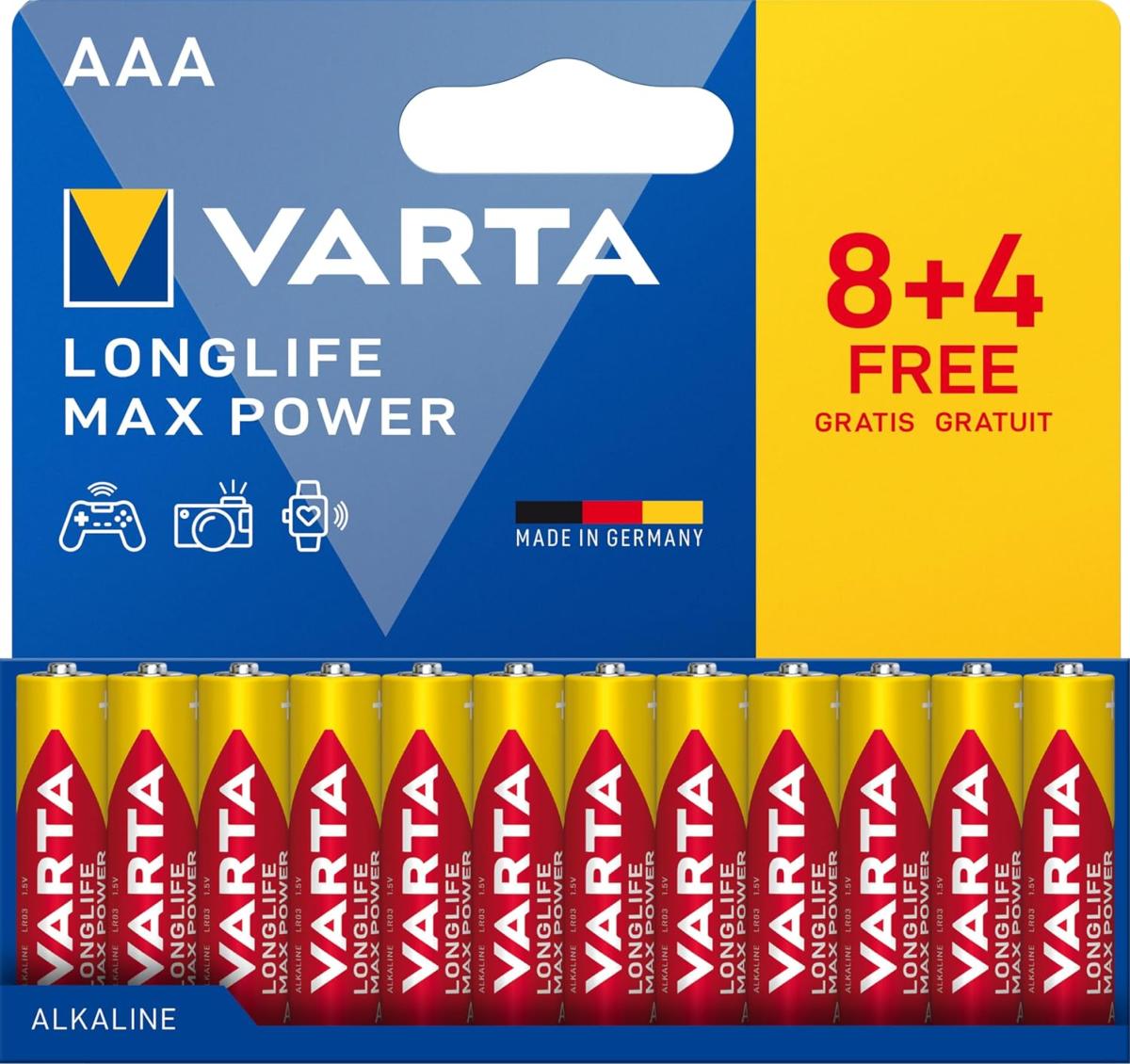 Piles LR06 VARTA LONGLIFE MAX POWER AA 8+4 offertes 1.5V Alcaline